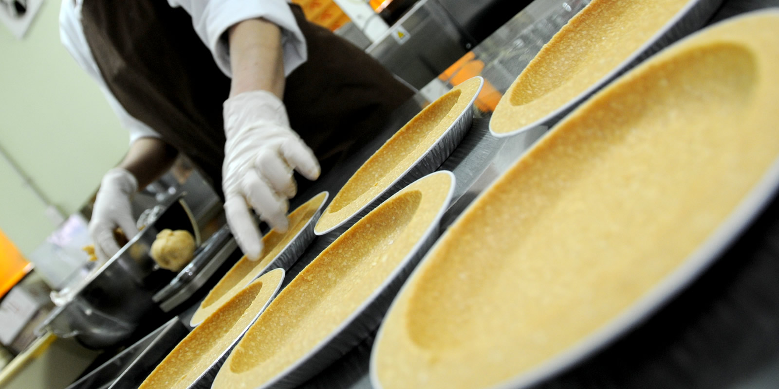 こだわりのタルトとこだわりの生地が一体になります。穴が空いたり、ヒビが入ってしまわないためにも、ひとつひとつ手作業で成型します。通常は、先にタルトだけ焼き、生地をのせてさらに焼くのですが、日南Sweets Factory MITSUKOのチーズケーキは生のタルトを使用し、生地とタルトを一度で焼き上げます。